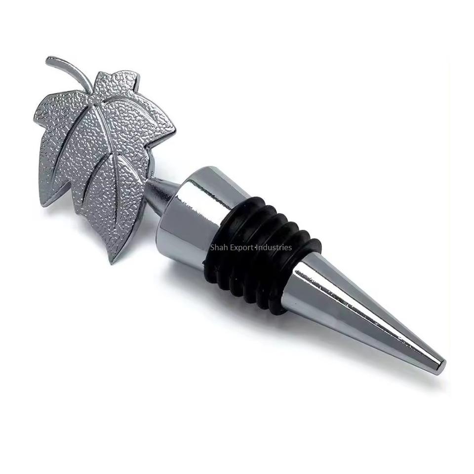 Leaf Design Luxury Metal Bottle Stopper for Bar Ware Parties Wine Bottle Stopper With Silver Plated Affordable Price