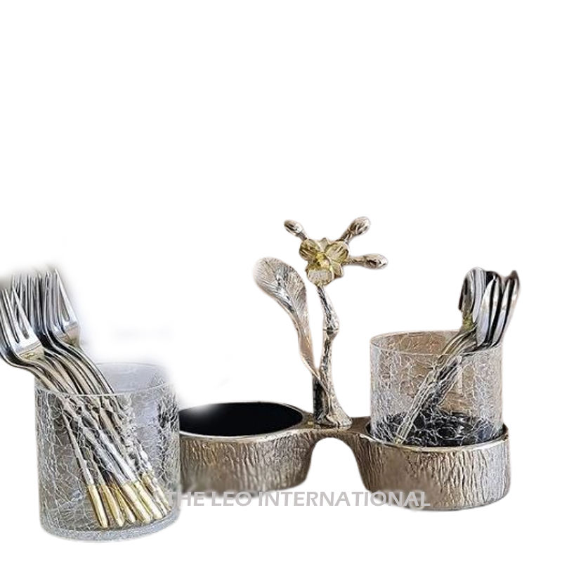 เครื่องใช้บนโต๊ะอาหารที่ใส่เครื่องใช้ในครัวที่วางเครื่องใช้บนโต๊ะอาหารทำจากอลูมิเนียมชุบเงินรูปทรงใบไม้