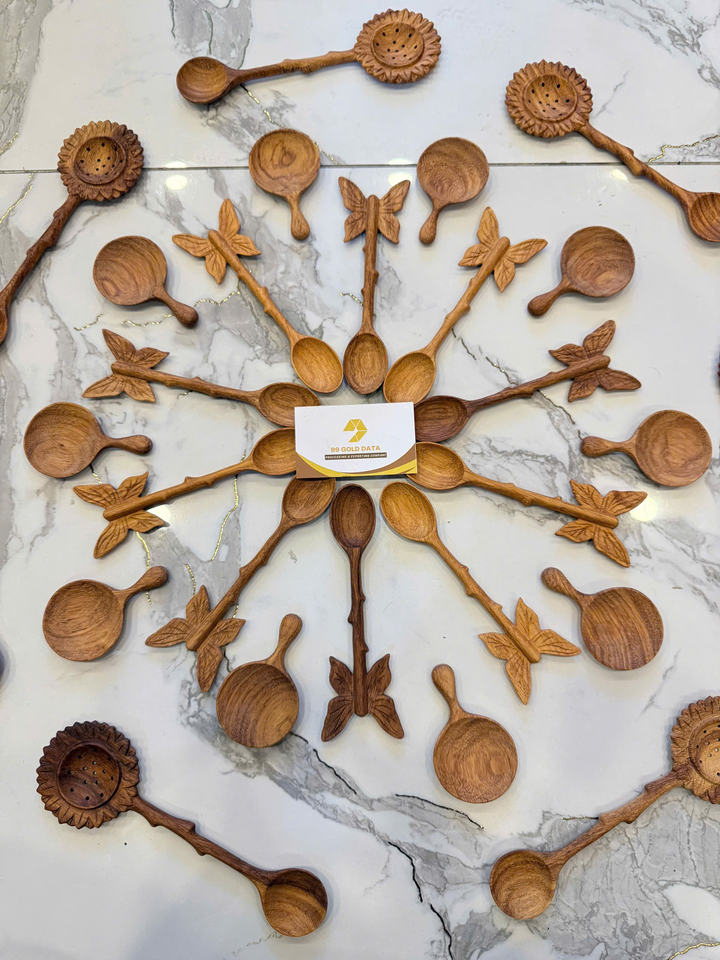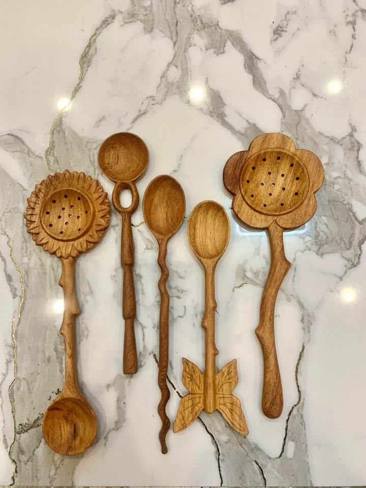 ช้อนไม้ด้ามใบไม้ ทำด้วยมือจากไม้เนื้อแข็ง สำหรับทำอาหาร คนอาหาร ตักอาหาร ขายส่งจากเวียดนาม