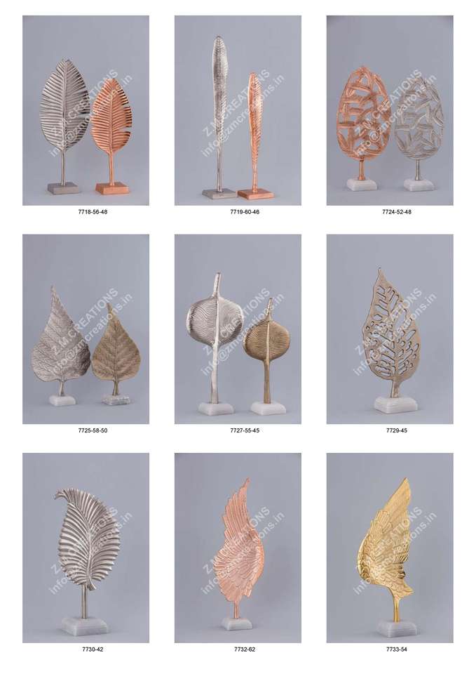 ศิลปะสมัยใหม่ใบไม้เงินโลหะตกแต่งรายการตารางด้านบนศิลปะโลหะสำหรับบ้านและโรงแรมประติมากรรมตกแต่งบนฐานไม้