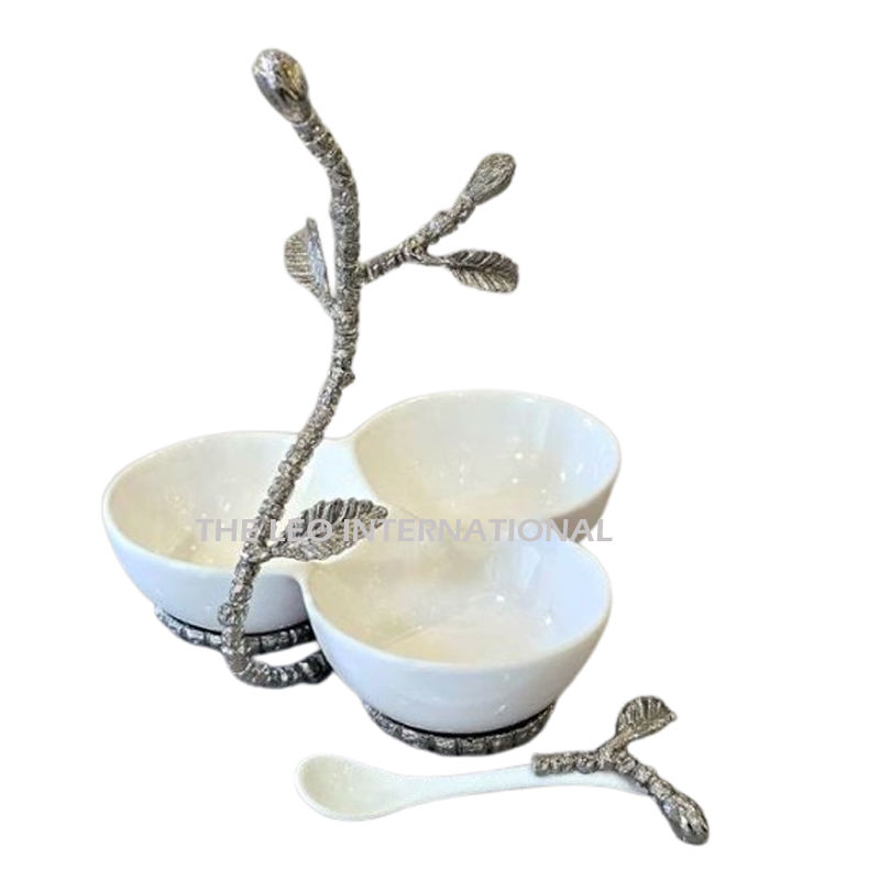 ชามตกแต่งฐานอลูมิเนียมโลหะทรงใบไม้ชามคลาสสิกสุดพิเศษสำหรับผลไม้
