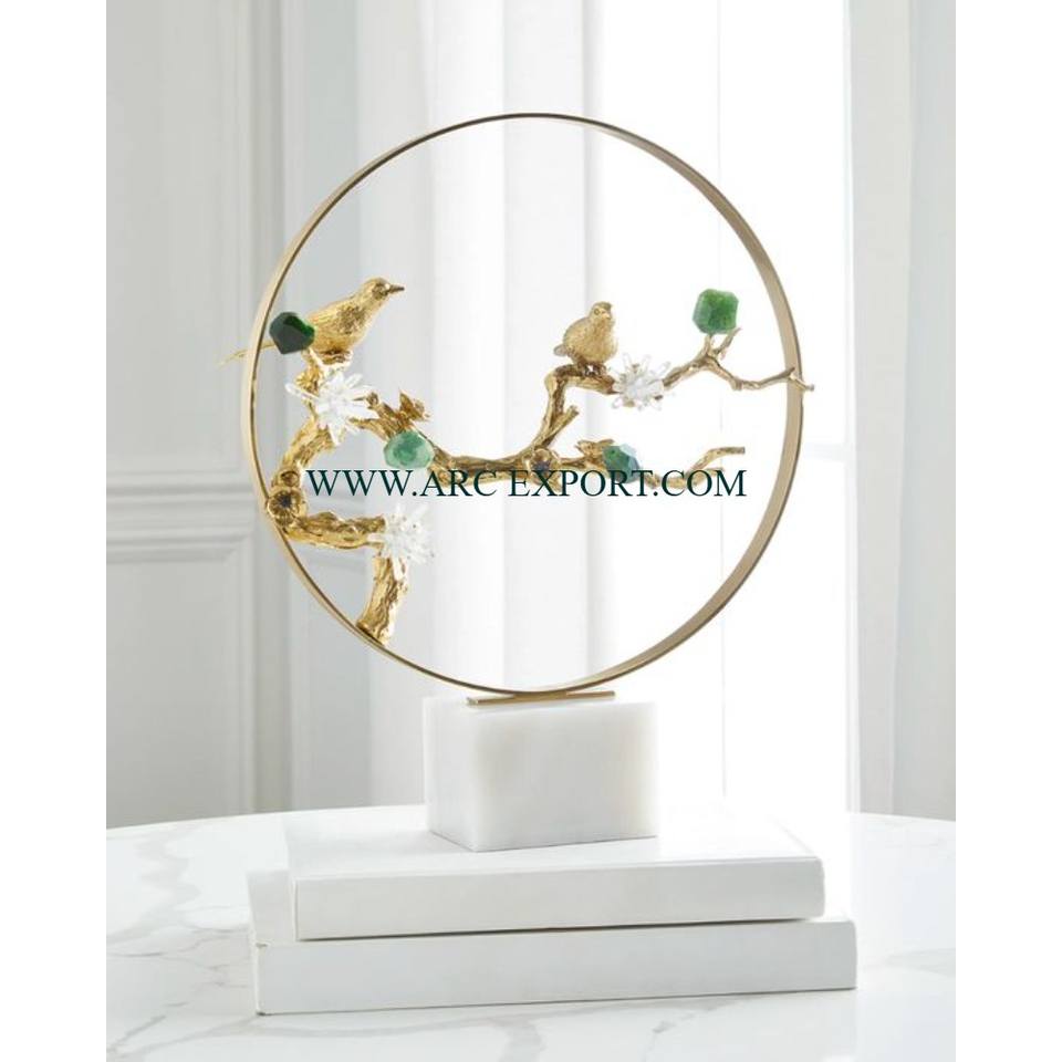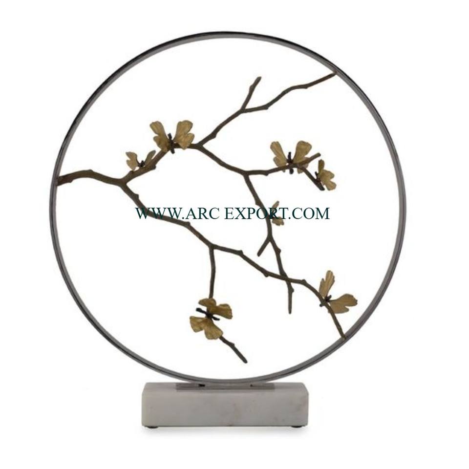 รูปปั้นตาข่ายสีทองรูปทรงใบไม้พร้อมฐานหินอ่อนรูปปั้นแฟนซีตกแต่งโต๊ะ