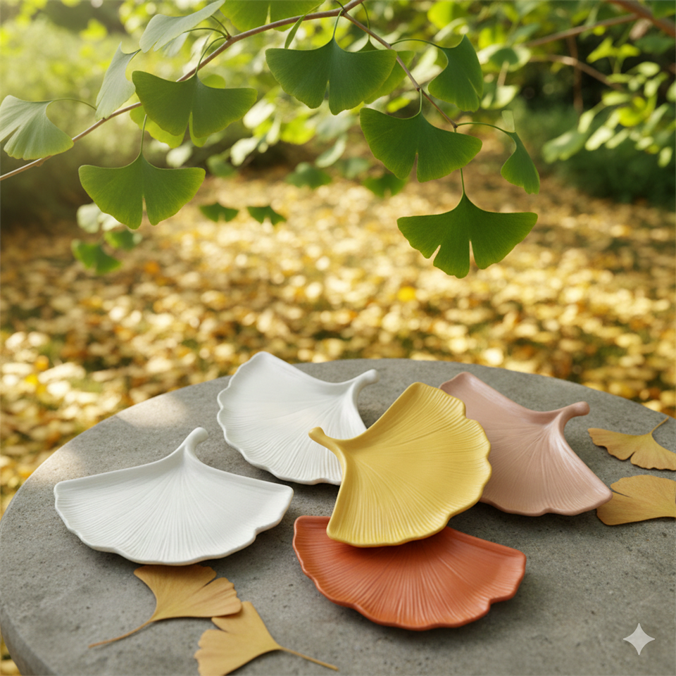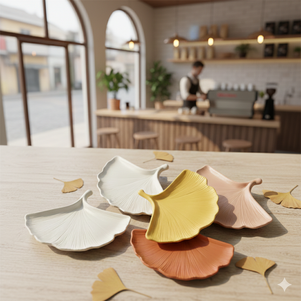 ถาดเสิร์ฟรูปใบไม้ จานใบแปะก๊วยตกแต่ง สำหรับขนม ของตกแต่งบ้าน ผลไม้ และเครื่องประดับ