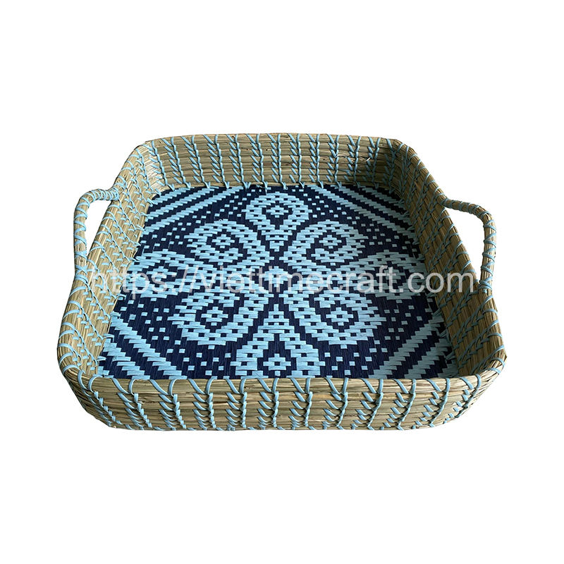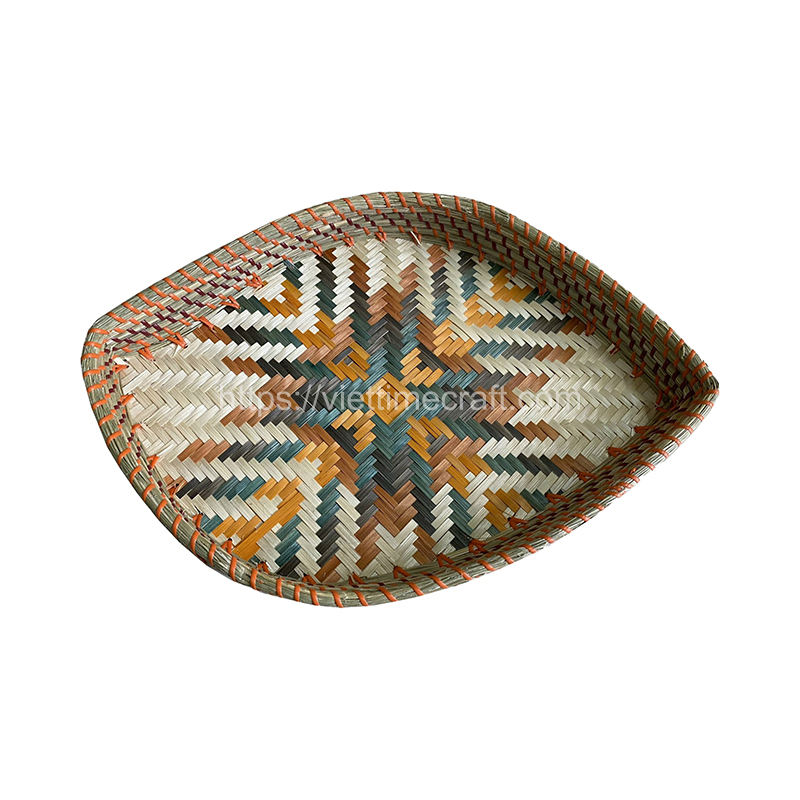 ตะกร้าใส่ของตกแต่งรูปใบไม้พร้อมถาดเสิร์ฟทำจากไม้ไผ่ผสมพลาสติกและหญ้าทะเลจากเวียดนามสำหรับอาหารเช้าและเครื่องดื่ม