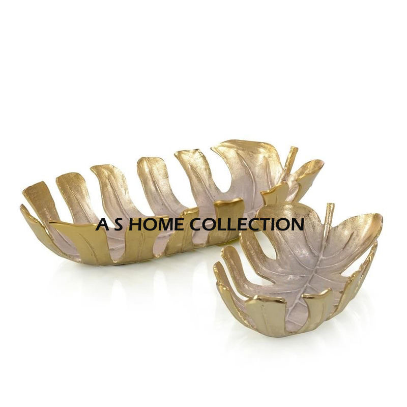 จานเหล็กใส่ผลไม้2ชิ้นทำจากอลูมิเนียมสำหรับตกแต่งรูปทรงใบไม้ใช้ตกแต่งดีไซน์ล่าสุด
