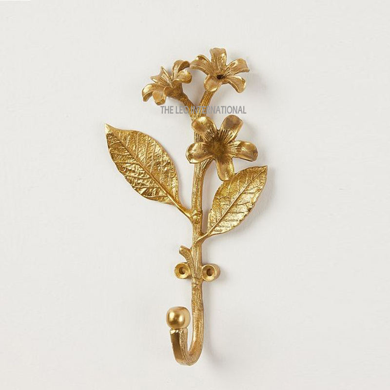 ตะขอแขวนเสื้อรูปใบไม้และดอกไม้ตะขอแขวนเสื้อแบบหล่อติดผนังขัดเงาสีทอง