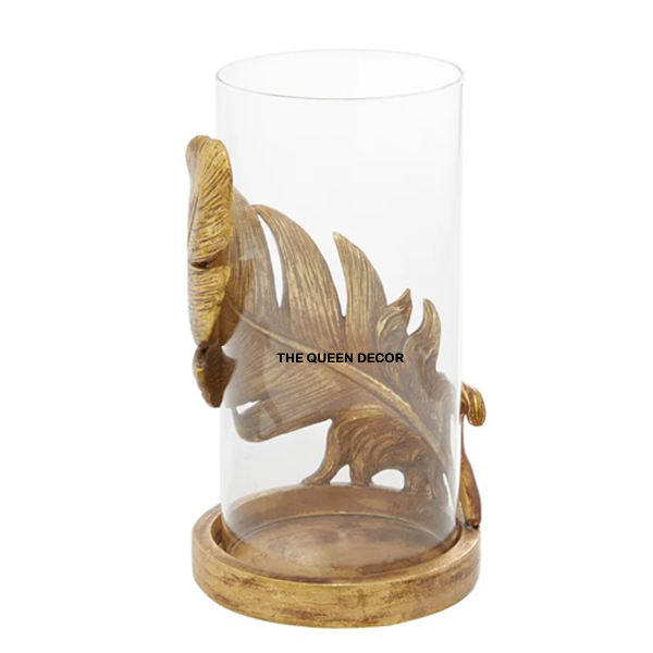 เชิงเทียนตกแต่งกระจกโลหะอลูมิเนียมทรงกลมเคลือบทองดีไซน์รูปใบไม้สำหรับวางเทียน