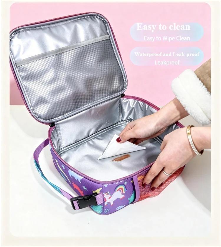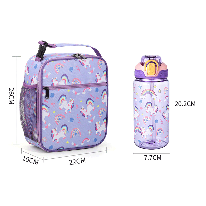 ชุดกล่องอาหารกลางวันกันน้ำรั่วพร้อมกระเป๋า, ขวดน้ำสำหรับเด็ก, กระเป๋าเก็บความเย็นแบบสองช่องสำหรับเด็กวัยหัดเดิน เด็กผู้หญิง ไปโรงเรียน