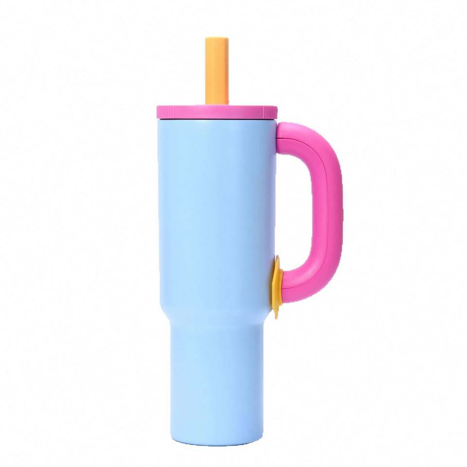 กระติกน้ำโลหะกันรั่วขวดน้ำสำหรับเล่นกีฬาเก็บความเย็น & ร้อนแก้วทัมเบลอร์ขนาด40ออนซ์พร้อมหลอดและที่จับ