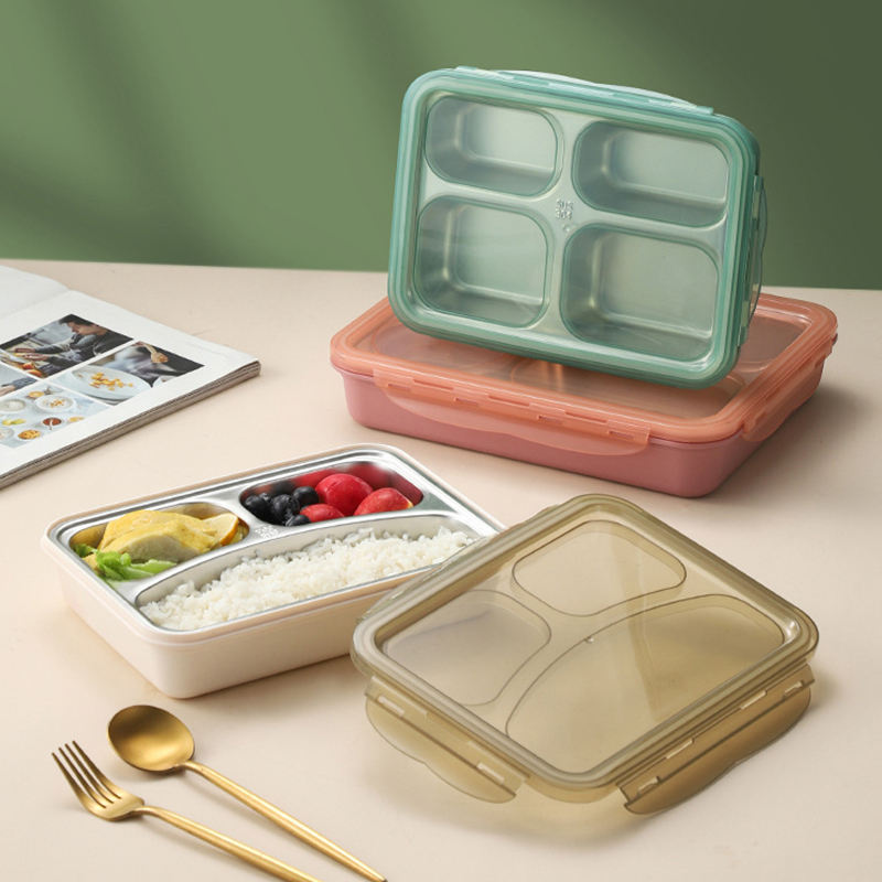 กล่องข้าวสแตนเลสสำหรับผู้ใหญ่ ป้องกันการรั่วซึม 3/4 ช่อง กล่องใส่อาหารกลางวัน ถาดแบ่งอาหาร