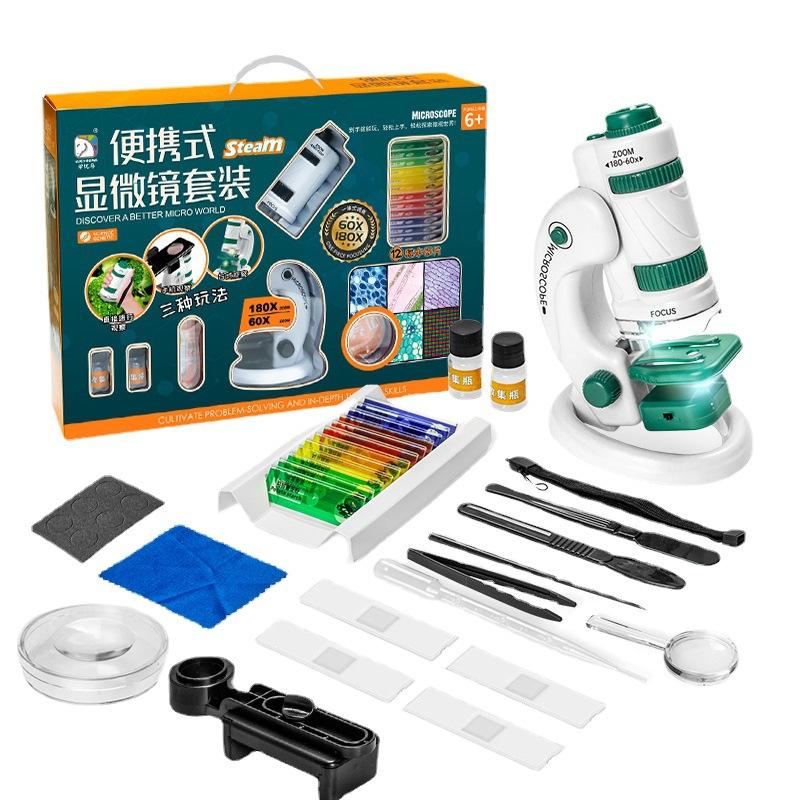 เรียนรู้ UMA กล้องจุลทรรศน์แบบพกพา60-180x ไฟ LED ชุดทดลองสำหรับเด็กและนักเรียน