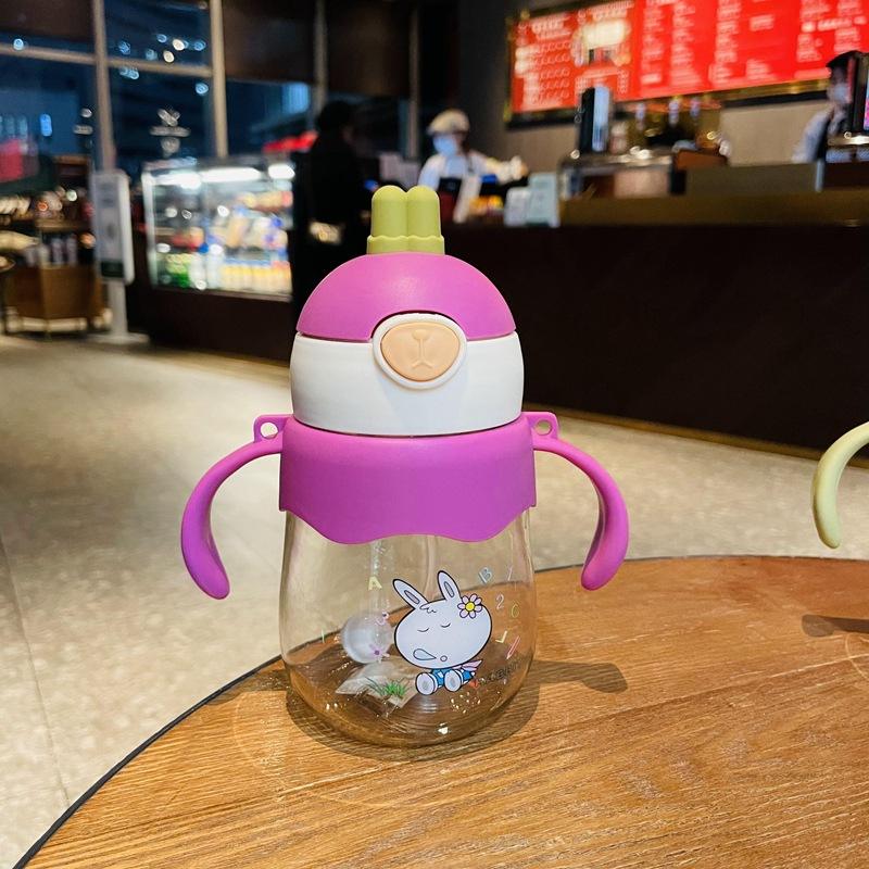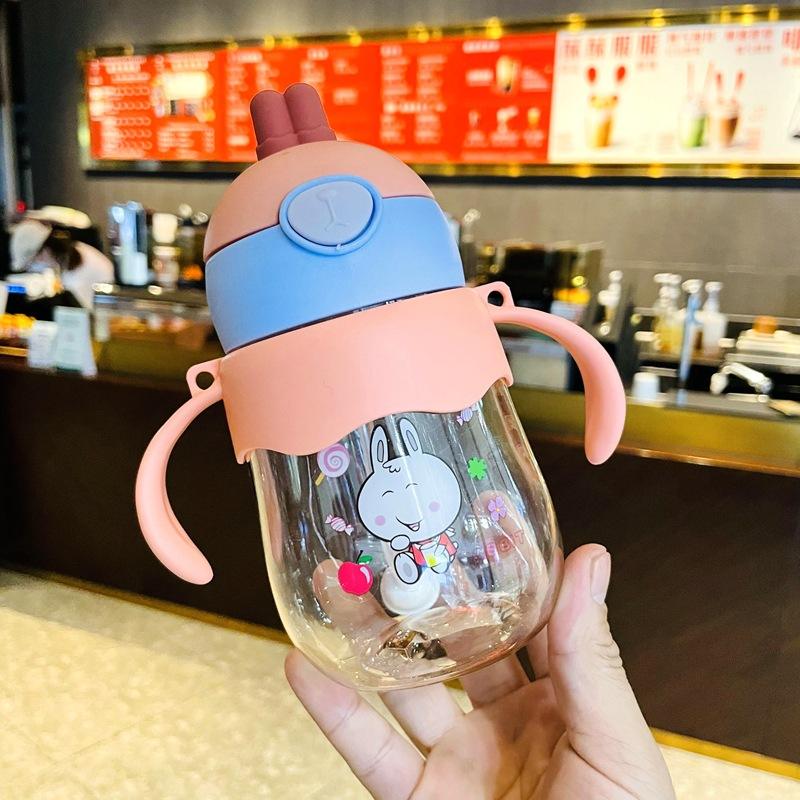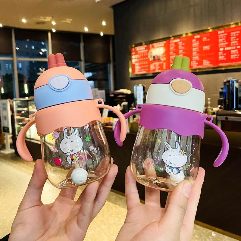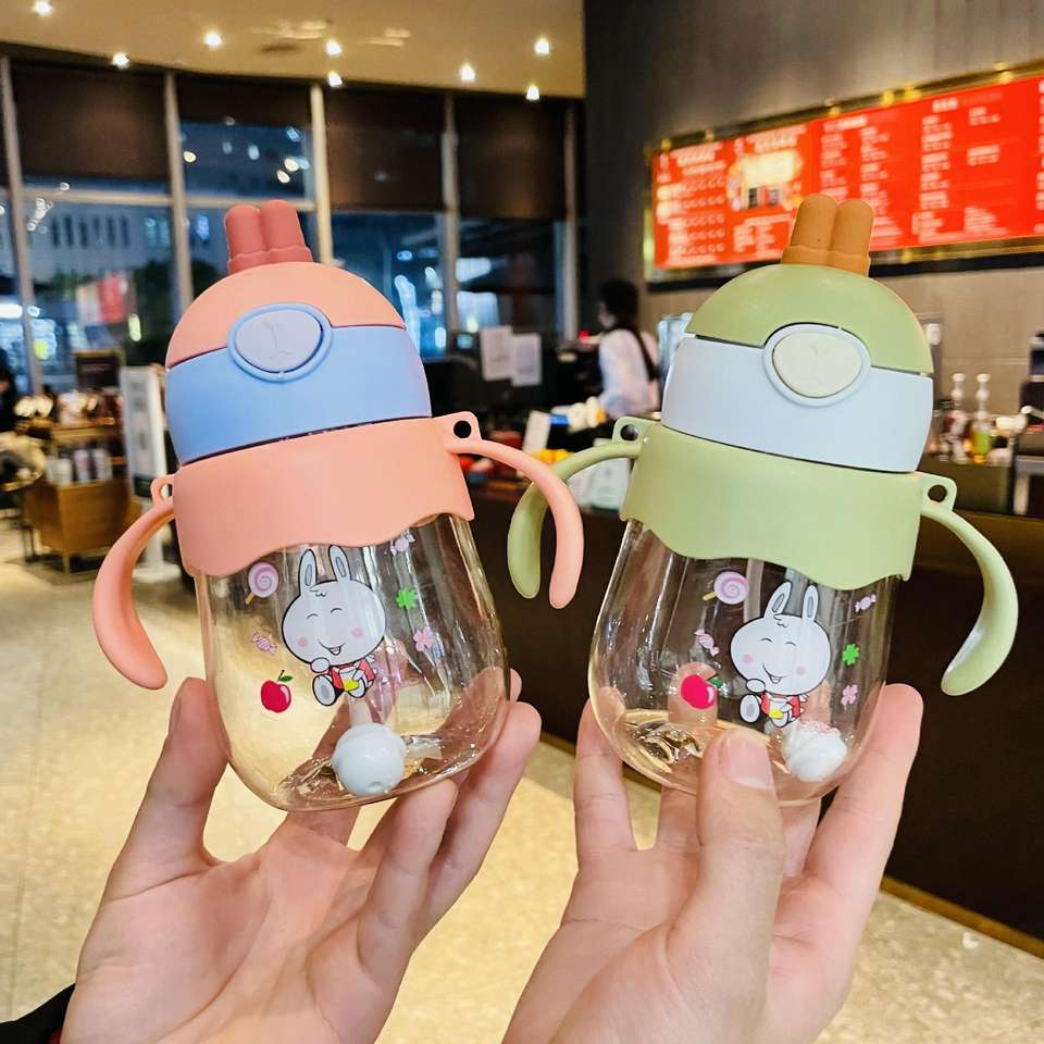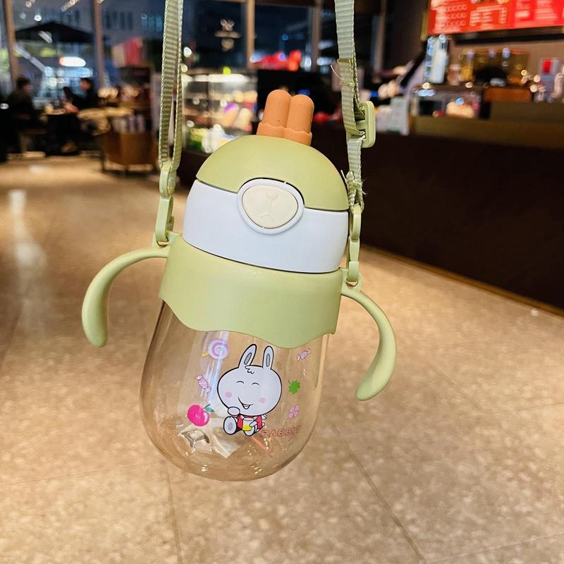 แก้วหัดดื่มสำหรับเด็ก แก้วนมเด็กแบบพกพา พร้อมสายสะพายสำหรับเด็กอนุบาล ใช้ได้สองแบบ ทำจากพลาสติก