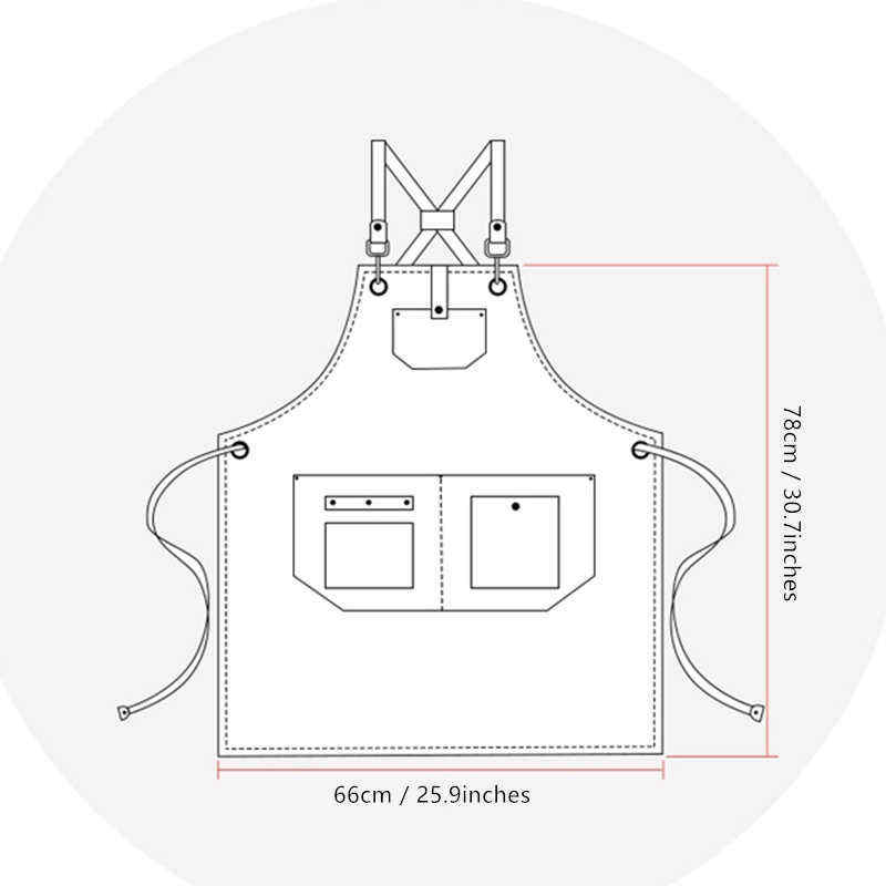 ผ้ากันเปื้อนหนังข้ามสายคล้องคอ Barista Bartender Pastry Chef Cafe Bistro BBQ Grill ชุดร้านตัดผม Carpenter ทำงาน