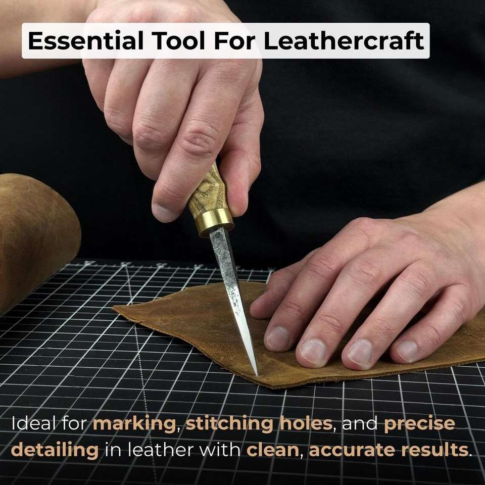 เข็มเย็บหนังปลายแหลมหลอมจากเหล็กคาร์บอนชุบแข็งเครื่องมือเย็บแบบด้ามหนัง