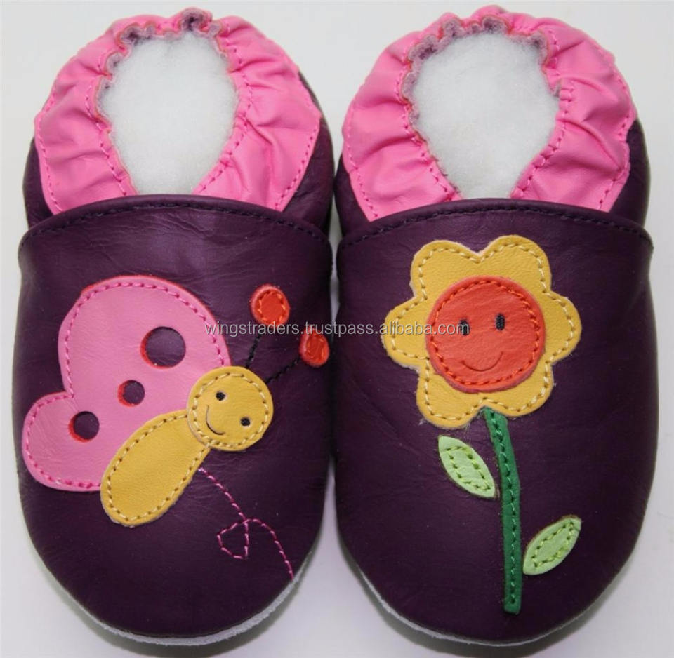 รองเท้าหนังเด็กลายดอกไม้และผึ้ง