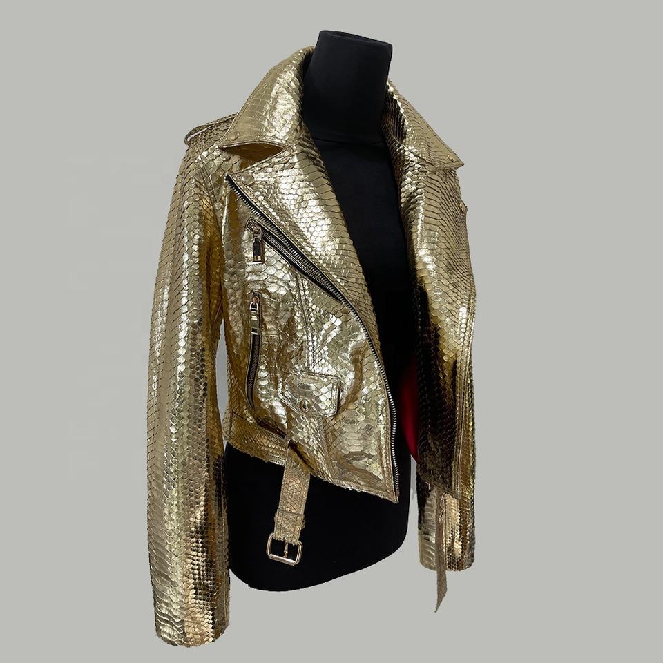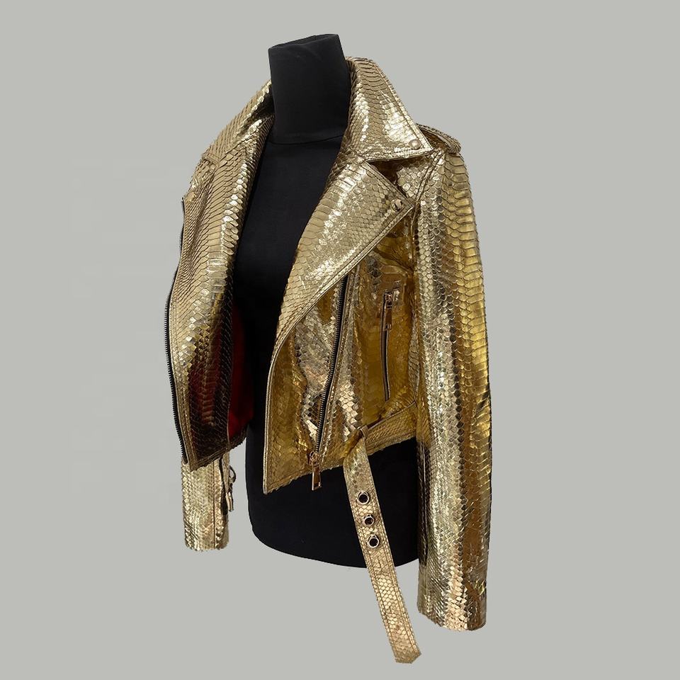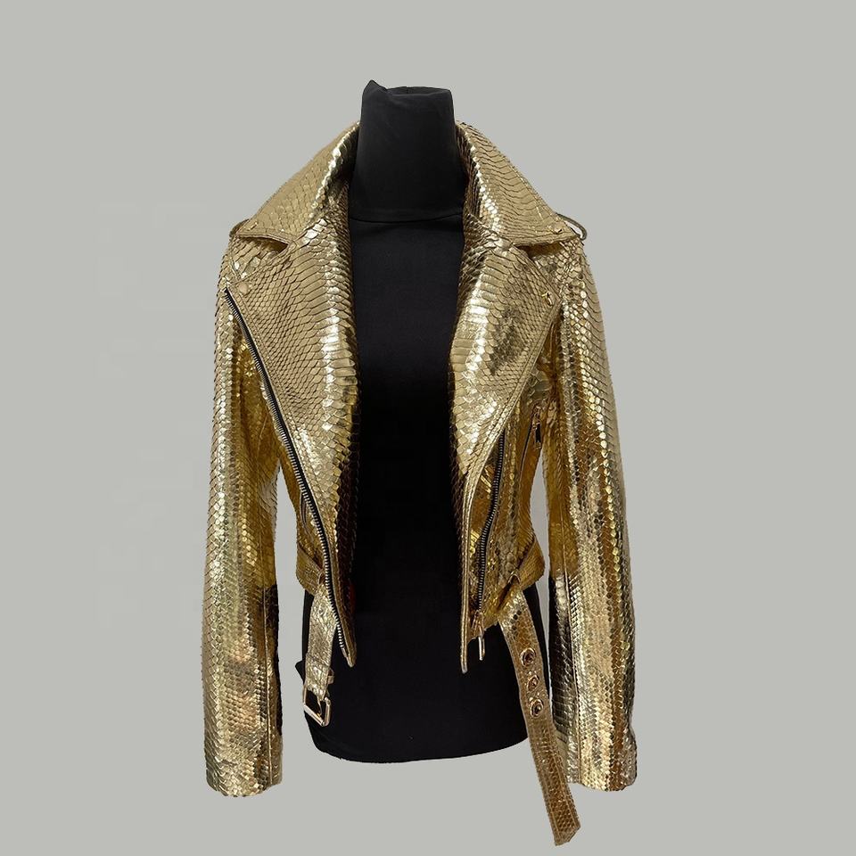 แจ็คเก็ตหนังนักขี่จักรยานสำหรับผู้หญิง,เสื้อหนังงูหลามหนังนูน