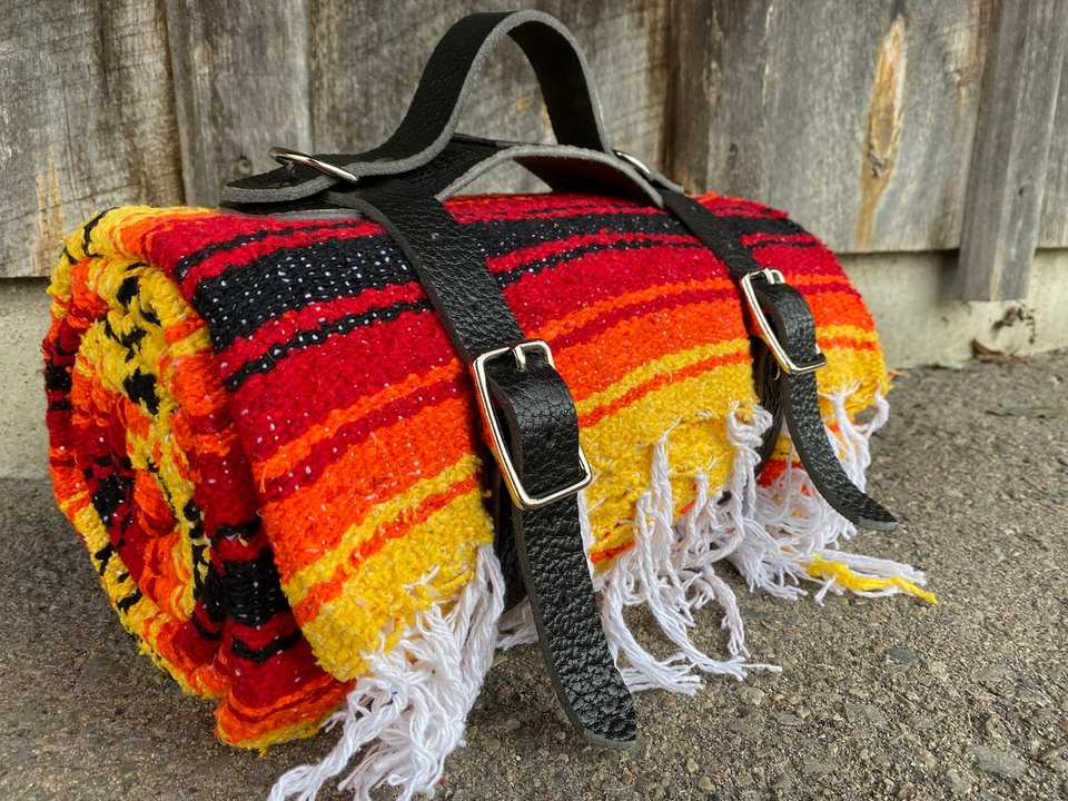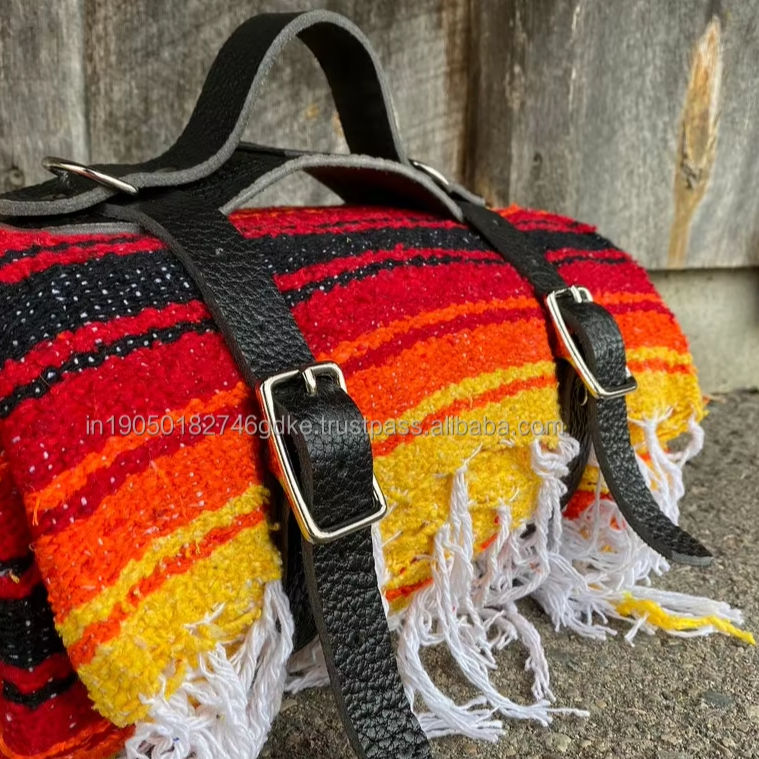 สายรัดผ้าห่มหนังแท้ ทนทาน ปรับได้ น้ำหนักเบา พร้อมหัวเข็มขัดทองเหลือง สำหรับการผจญภัยกลางแจ้ง