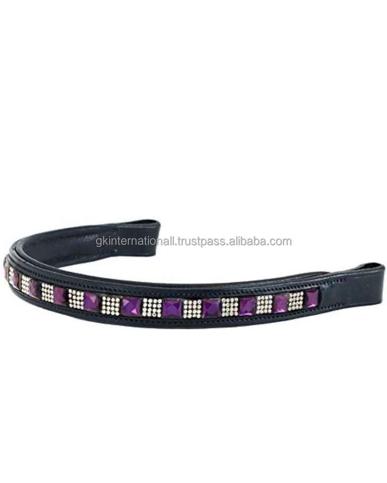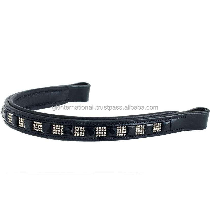แถบคิ้วหนังสีดำหรือน้ำตาลหนังแท้ที่บุด้วยหนังม้าสำหรับบังเหียนประดับคริสตัลและปิรามิดประดับเพชร
