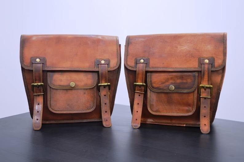 ชุดกระเป๋าข้างหนังสีน้ำตาลขนาดใหญ่2ใบกระเป๋าทรงสปอร์ตกระเป๋าจักรยานแบบดัฟเฟิลสำหรับเดินทางมอเตอร์ไซค์