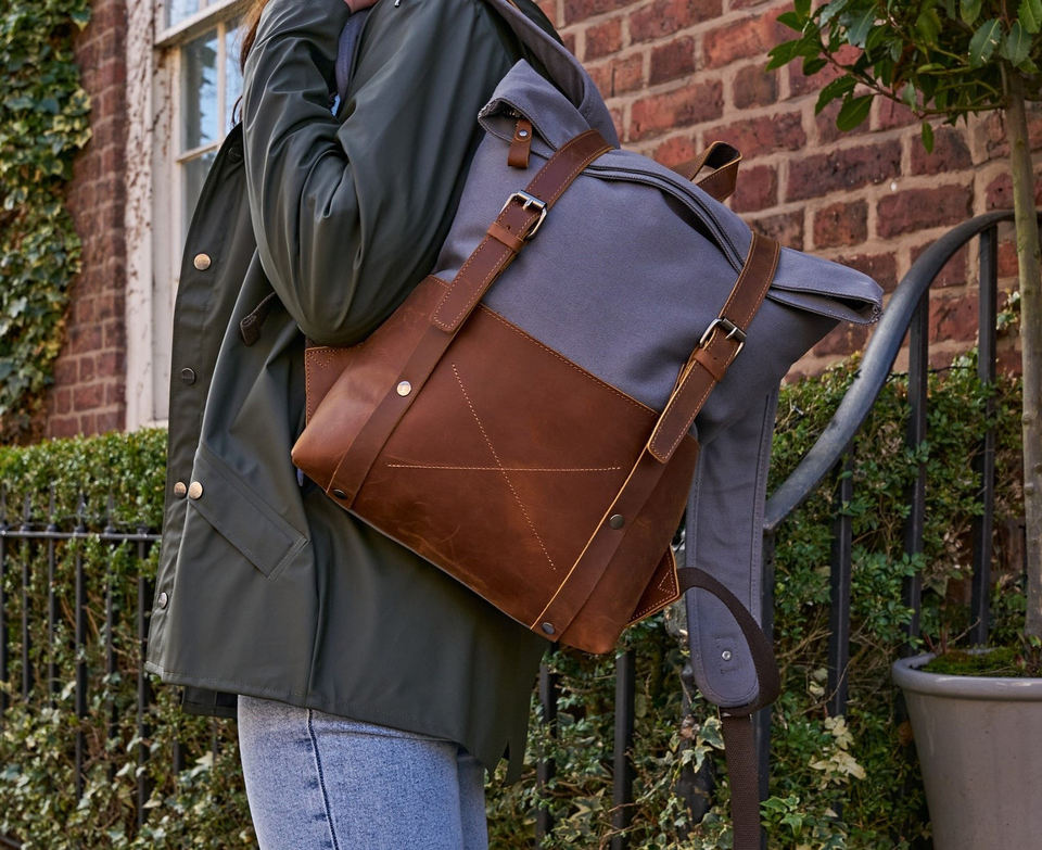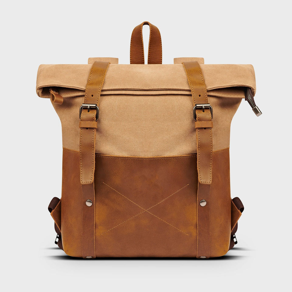 Genuine Leather Canvas Backpack