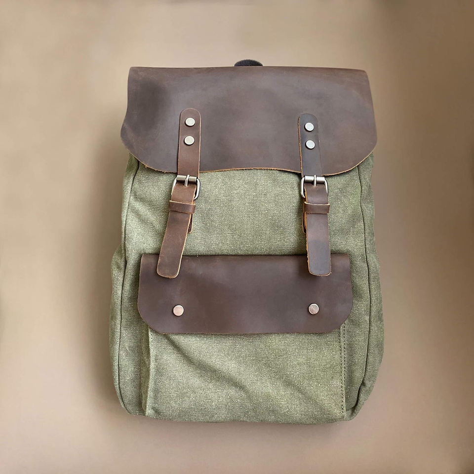 Leather Canvas Backpack