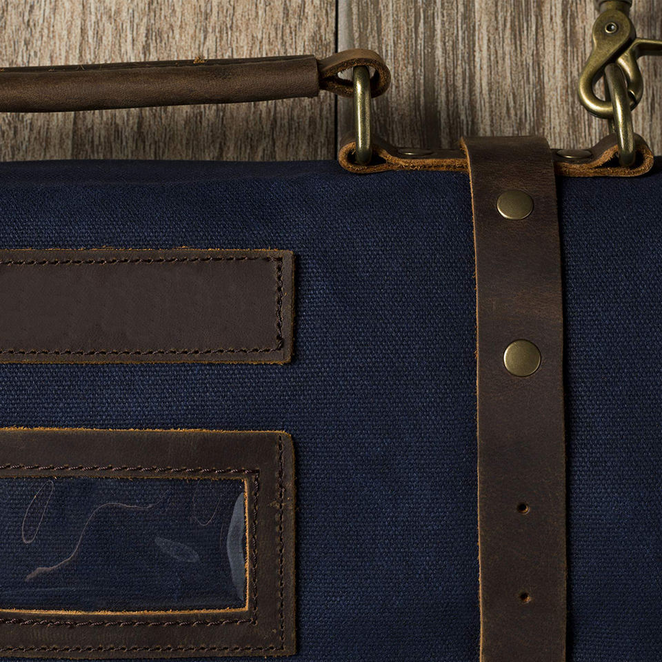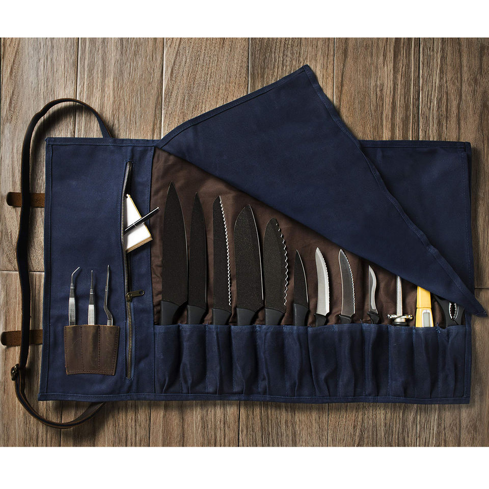 กระเป๋าใส่มีดเชฟหนังและผ้าแคนวาสอย่างดี ทนทาน พร้อมซิป สำหรับจัดเก็บอุปกรณ์ครัวมืออาชีพ รุ่น LCKR-0014