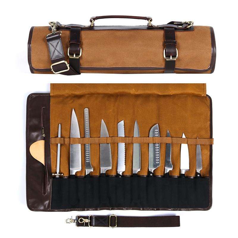 กระเป๋าใส่มีดหนังผสมผ้าแคนวาสอย่างดี ทนทาน กันน้ำ กันกระแทก สำหรับเชฟมืออาชีพ ใช้เก็บอุปกรณ์ครัว และพกพาเดินทาง