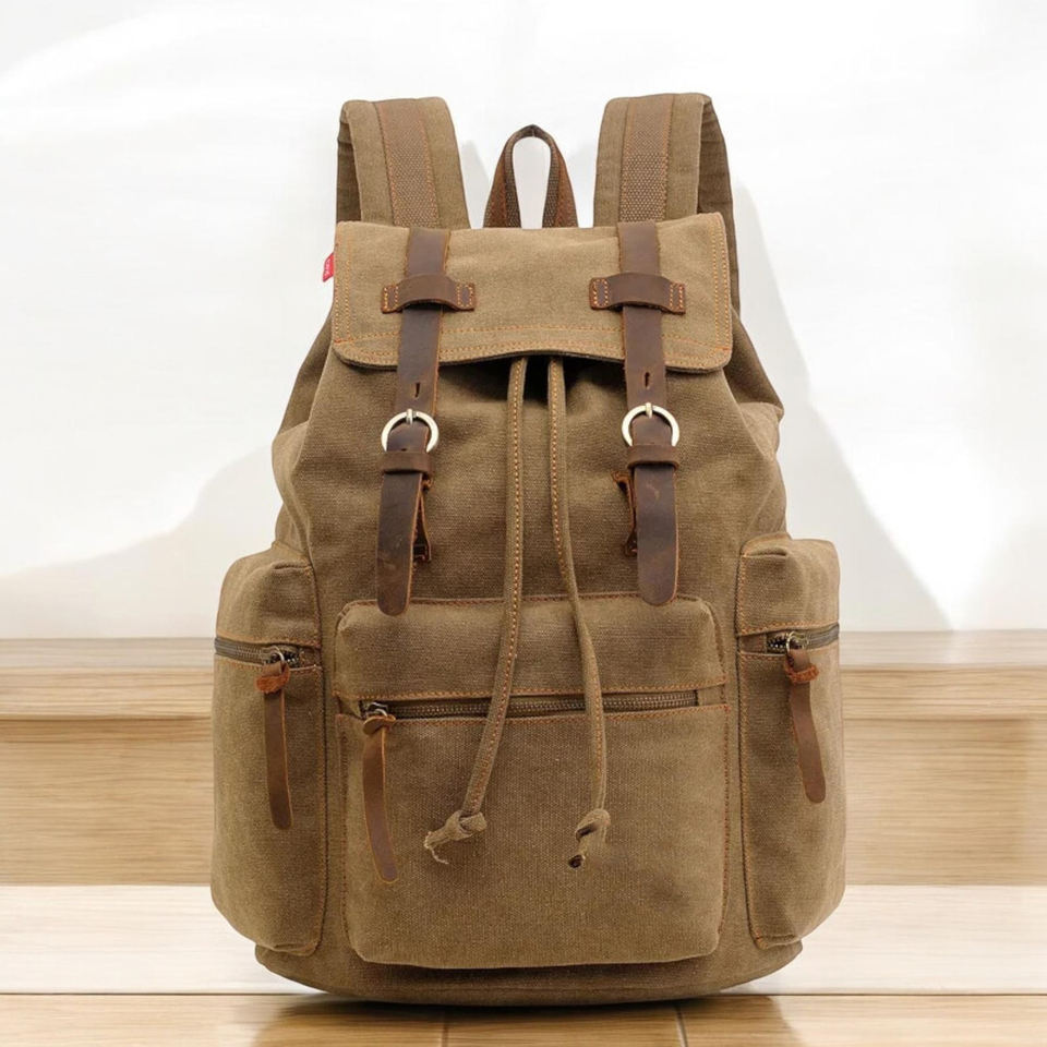 Genuine Leather Canvas Backpack