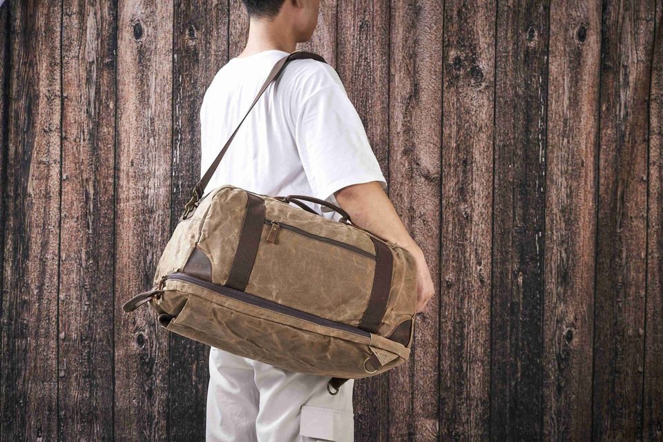 กระเป๋าเดินทางผ้าใบหนัง LCTB-0099ขนาดใหญ่พร้อมผ้าใบกันน้ำสำหรับสุดสัปดาห์ค้างคืน