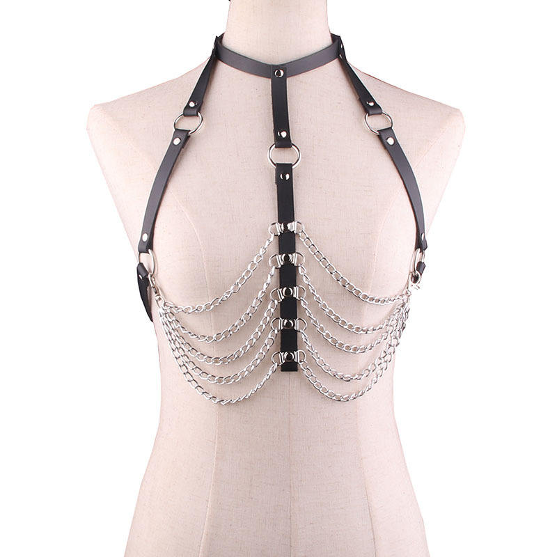 สร้อยโชคเกอร์คอปกหนังเครื่องประดับแบบ all-in-one สายสร้อยคาดอกเซ็กซี่สายรัดเอวสำหรับเต้นระบำหน้าท้อง