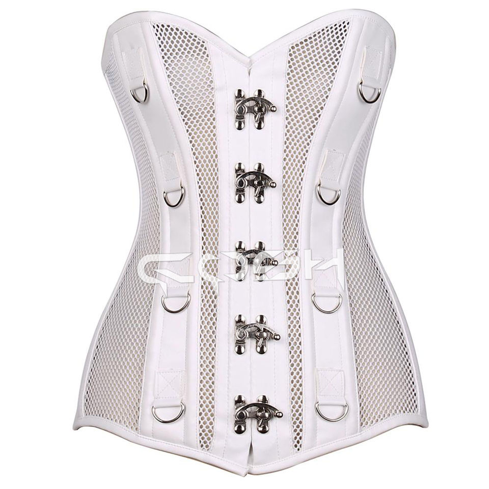 ชุดคอร์เซ็ทหนังสีเขียวตาข่าย แต่งหนังเทียมสีขาว คอร์เซ็ทเสริมโครงเหล็ก