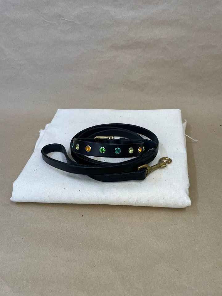 ชุดสายจูงหนังคอปกคริสตัลพลอยเทียมสำหรับเดินขนาดเล็กและขนาดกลางคอสัตว์เลี้ยงของขวัญสุนัขใหม่