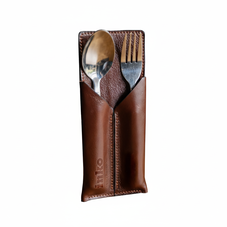 ที่ใส่ช้อนส้อมมีดทำจากหนังชุดเครื่องใช้บนโต๊ะอาหารสแตนเลสสตีลทอง