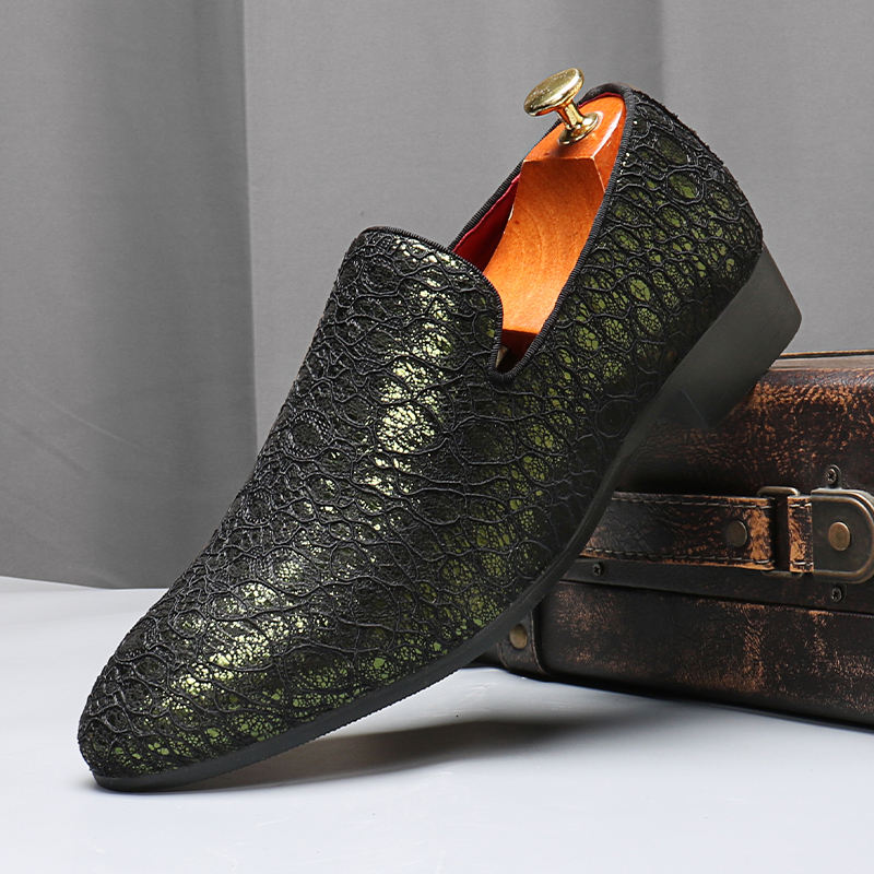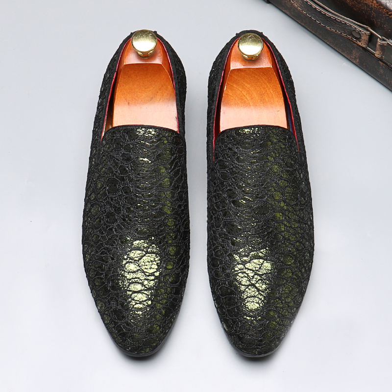รองเท้าเดรสหนัง PU สีดำแบบทางการ สไตล์อ็อกซ์ฟอร์ด สำหรับผู้ชาย ปลายรองเท้าทรงจระเข้ สวมแบบสลิปออน กันน้ำ น้ำหนักเบา เหมาะสำหรับฤดูใบไม้ร่วง ทำด้วยมือ