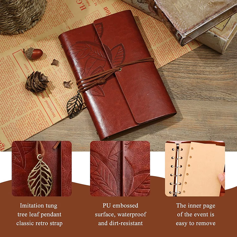 ไดอารี่หนัง ไดอารี่หนัง สีน้ําตาล โบราณ หนังแฮนด์เมด กระดาษจดบันทึกสําหรับผู้ชายและผู้หญิง ของขวัญสําหรับทุกคน