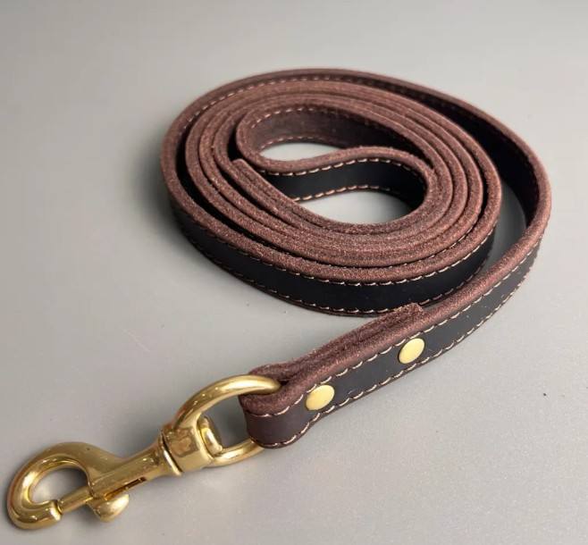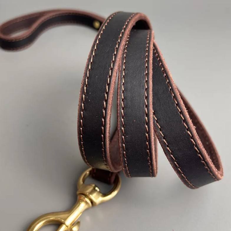Leather Dog Leash Soft Cowhide Lead with Brass Hook Modern Handmade Dog Accessory