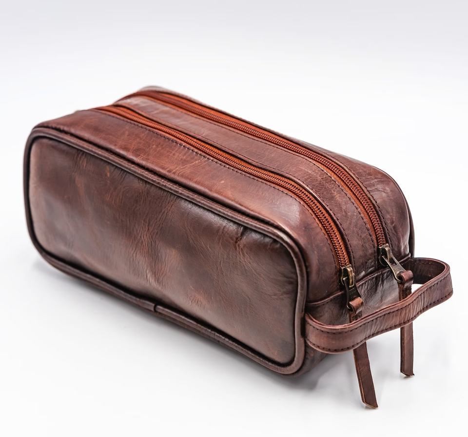 กระเป๋าใส่เครื่องสำอางหนังแท้แบบมีช่องคู่ ปักอักษรย่อ สำหรับผู้ชาย ของขวัญสำหรับเพื่อนเจ้าบ่าว ปิดด้วยซิป