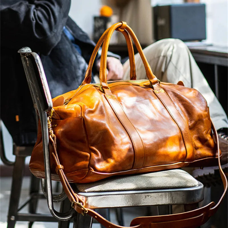 กระเป๋าหนังทรงดัฟเฟิลสำหรับเดินทางไปยิมกระเป๋าหนังกระเป๋าเดินทางสำหรับผู้ชาย