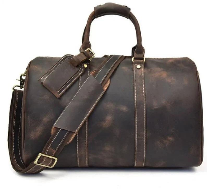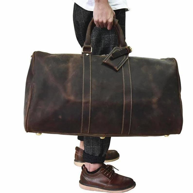 กระเป๋าหนังทรงดัฟเฟิล สไตล์เฮอริเทจ สำหรับเดินทางช่วงสุดสัปดาห์ เหมาะสำหรับผู้ชายและผู้หญิง ความจุขนาดใหญ่ ทนทาน ปิดด้วยซิป พกพาสะดวก รุ่น LDB-0260