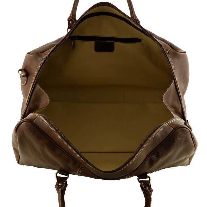 กระเป๋าหนังทรงดัฟเฟิล สไตล์วินเทจ สำหรับเดินทางช่วงสุดสัปดาห์ เหมาะสำหรับผู้ชายและผู้หญิง ความจุขนาดใหญ่ ใช้เป็นกระเป๋าถือขึ้นเครื่องได้ พกพาสะดวก