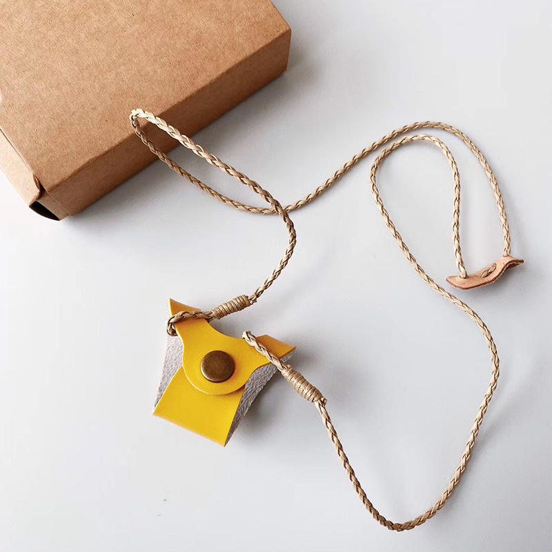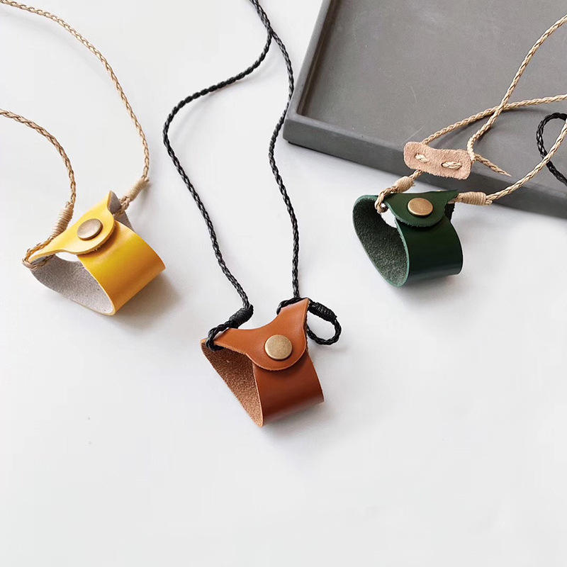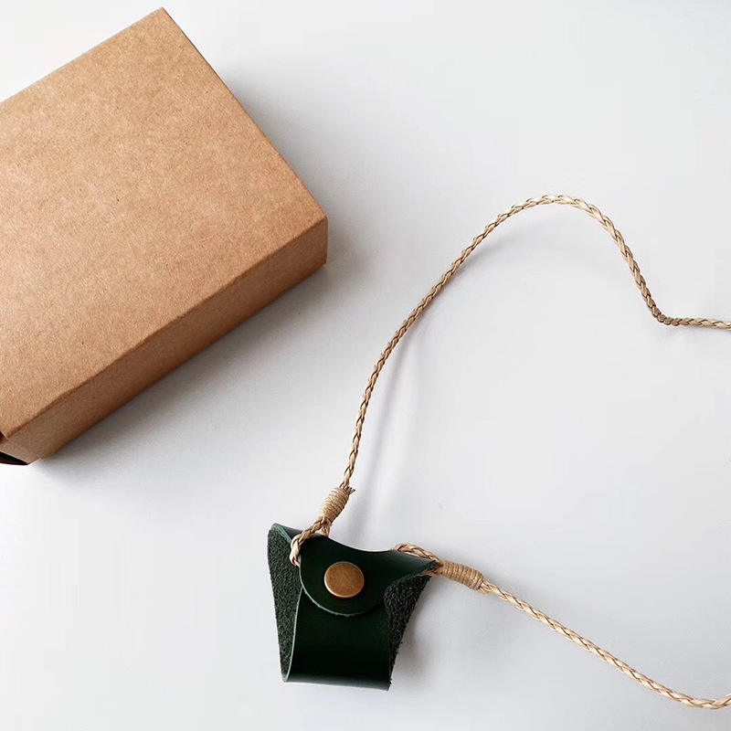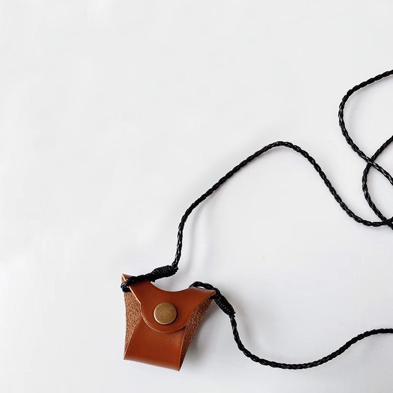 กล่องใส่แว่นตาหนังพร้อมสายคล้องคอ ที่ใส่แว่นกันแดดป้องกันการตก สีทึบ รูปทรงไม่สม่ำเสมอ ทำด้วยมือเพื่อป้องกันแว่นตา