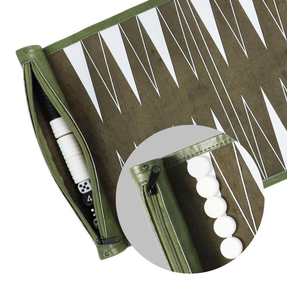 ชุดแบ็คแกมมอนพับได้ทำจากหนัง พร้อมชุดหมากรุกคู่ สำหรับใช้งานกลางแจ้งและงานปาร์ตี้