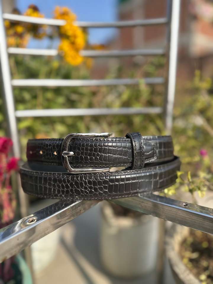 เข็มขัดหนังแท้สีน้ำตาลลายจระเข้แบบตะวันตก หัวเข็มขัดเหล็ก ปรับแต่งได้ กว้าง 3.5 ซม. ยาว 120 ซม. พิมพ์ลายด้วยความร้อน