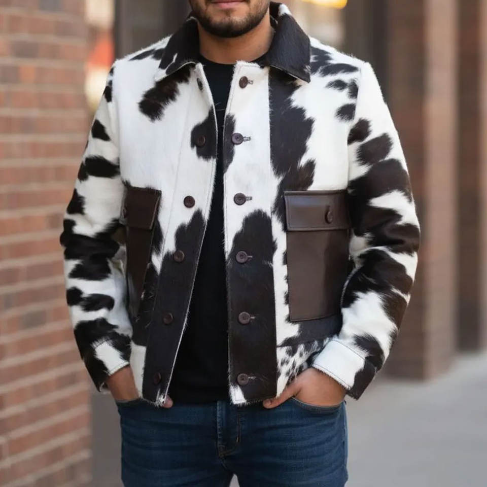 เสื้อแจ็คเก็ตหนังวัวแท้สำหรับผู้ชาย