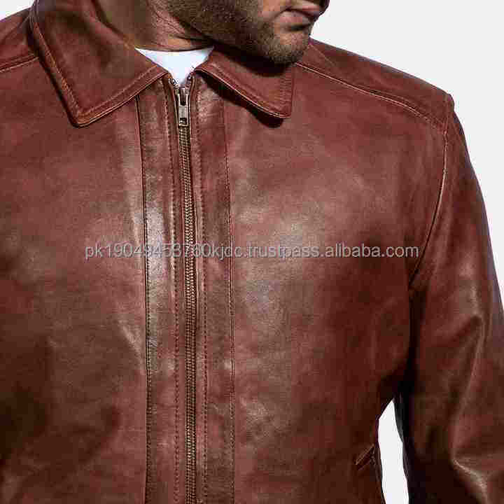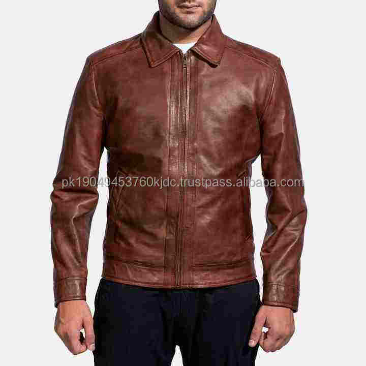 แจ็กเก็ตหนังผู้ชายคอตั้งวินเทจเข้ารูปปรับแต่งได้100% หนังแท้อบอุ่นในฤดูหนาว