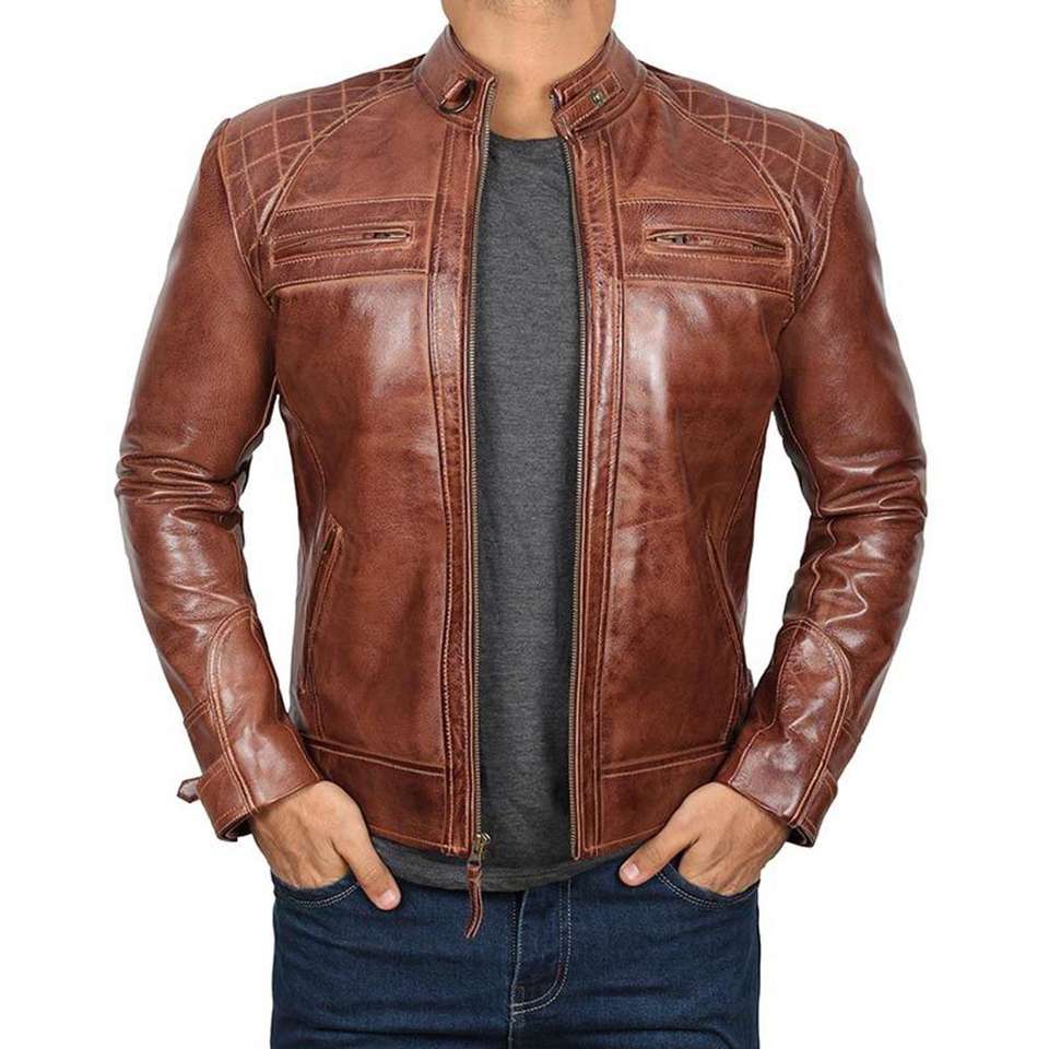 แจ็กเก็ตหนังแกะแท้สำหรับผู้ชายแจ็กเก็ตมอเตอร์ไซด์มีซิปรูดแฟชั่นกระเป๋าข้าง2026
