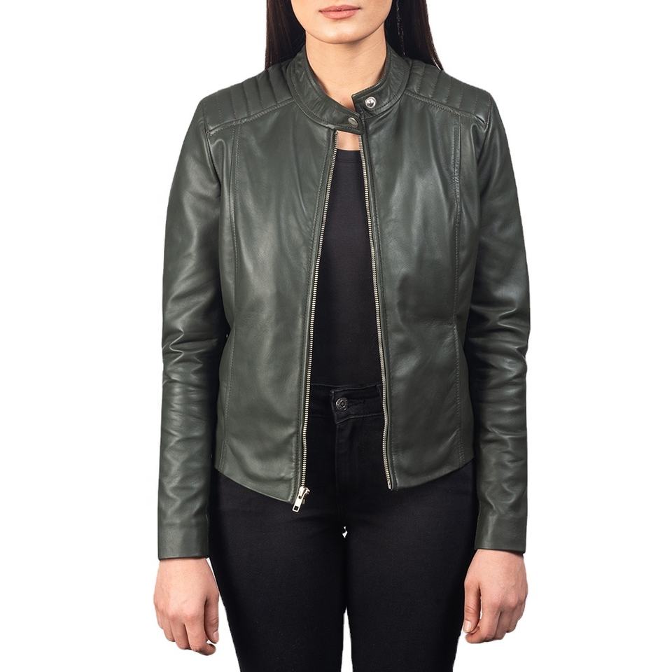 แจ็คเก็ตหนังผู้หญิง,เสื้อแจ็คเก็ตหนังแก้ว PU คอปกนุ่มสบายสำหรับขี่มอเตอร์ไซค์บริการ OEM สำหรับผู้หญิง