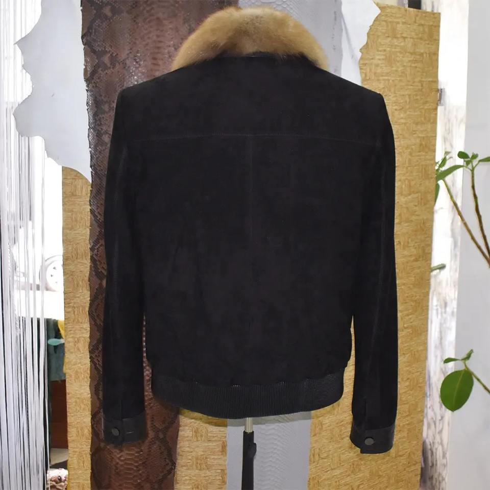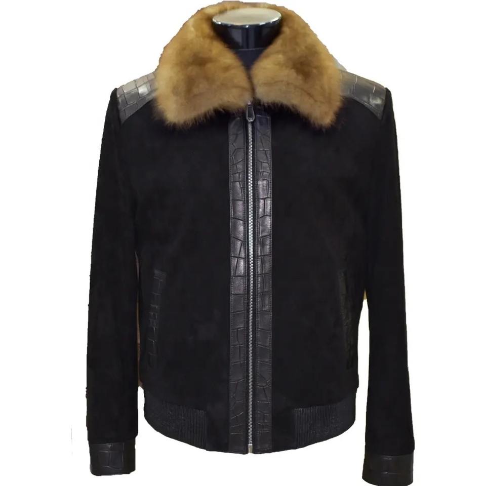 แจ็คเก็ตหนังผู้ชาย หนังจระเข้สีดำ หนังกลับลายจระเข้ใหม่ พร้อมปกขนสัตว์ถอดได้