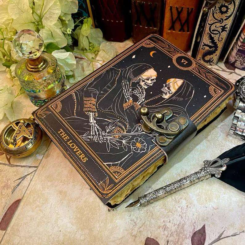 สมุดบันทึกหนังโบราณขอบฝาปิดหนังสือกระดาษวินเทจของเงาสมุดบันทึก Grimoire สมุดร่างหนังโดยผู้จัดจําหน่ายอินเดีย