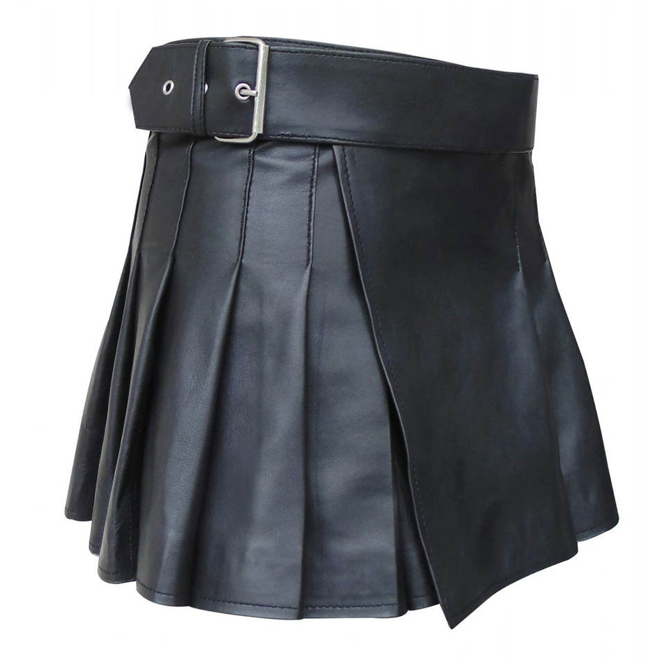 กระโปรงพับหนังสำหรับผู้ชายกระโปรงอเนกประสงค์หนังแท้งานแฮนด์เมดสไตล์กอธิค2026
